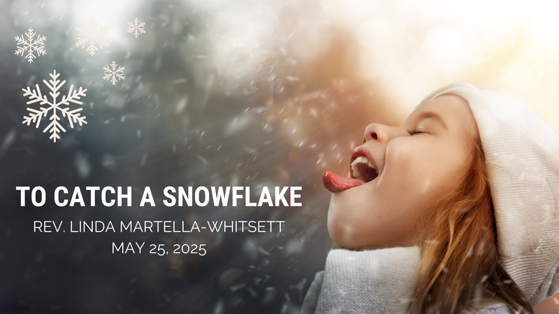 Rev. Linda will grace our platform with her message: To Catch a Snowflake, on Sunday May 25th for our regular service at 10:00 A.M.